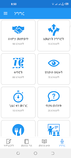 This Geez Learning Application provides a comprehensive list of lessons, Verb dictionary with their family, Geez-Amharic dictionaries and collection of phrases that are useful for daily conversations.