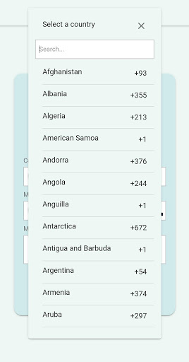 - Select the country code from the drop-down list