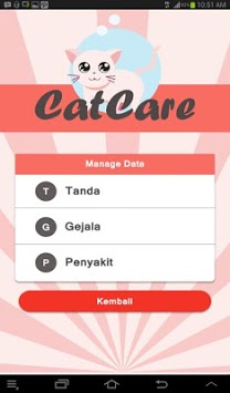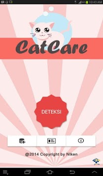 Aplikasi ini merupakan cara alternatif untuk mendeteksi penyakit kucing berdasarkan tanda yang terlihat. Hasil perhitungan pada aplikasi ini dihitung menggunakan metode Correlation Measurement. Selain itu pada aplikasi ini juga terdapat informasi-informasi seputar kucing, seperti jenis kucing, penyakit kucing dan perawatan kucing.Untuk mendeteksi penyakit kucing, anda dapat masuk pada menu Deteksi. Sedangkan untuk melihat informasi seputar kucing, anda dapat masuk pada menu Seputar Kucing.