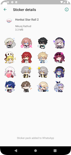 You can easily and absolutely free diversify your stickers for WhatsApp with a few clicks. Honkai Star Rail stickers range from all kinds of funny and cute emojis. Send your new stickers to any WhatsApp chat.