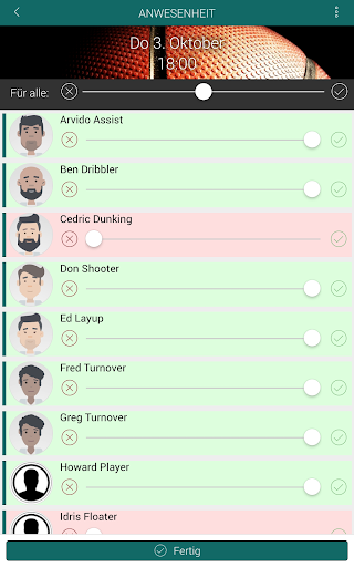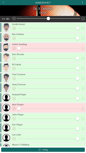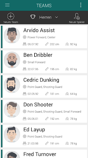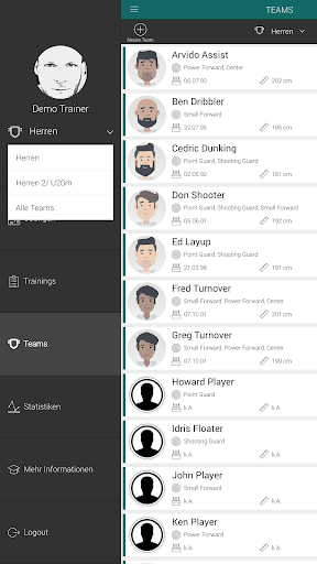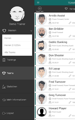 Egal ob ein Team oder mehrere Mannschaften – mit 99coaches - Basketball Training & Übungen behältst du den Überblick. Wechsle ganz einfach zwischen Teams und lasse dir die Übersicht aller Mitglieder mit Infos wie Kontaktdaten, Jahrgang und Profilfotos vom jeweiligen Spielern anzeigen.