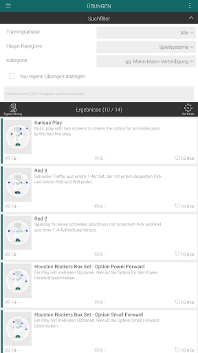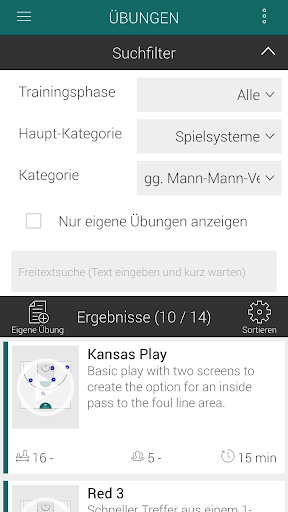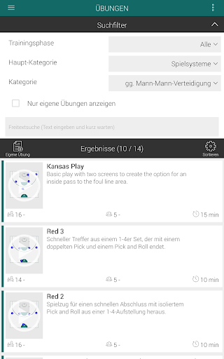 Jede Übung ist ausführlich beschrieben und verschiedene Grafiken helfen dir dabei alles noch besser zu verstehen. Damit du die passenden Übungen findest, kannst du z.B. nach speziellen Übungen für dein Warm up, den Hauptteil des Trainings oder das Cool down suchen. Oder du wählst einen speziellen Trainingsfokus, wie beispielsweise Technik, Taktik, Fitness oder Spiel. Und natürlich hast du auch die Möglichkeit deine eigenen Übungen ganz schnell und einfach in der App abzuspeichern.