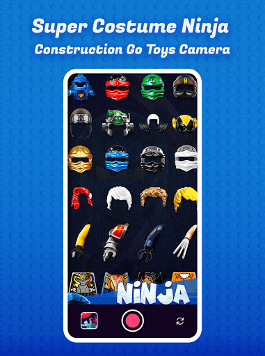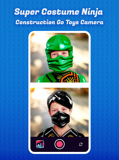🥷 Super Costume Ninja - Construction Go Toys Camera is a great ''photo suit'' app that you need to see and try out! Download this photo editor and have one of the most original ''photo montage'' maker! You can even design and create your own superhero suit with the help of the pieces this ninja mask face changer contains! Save your new ''ninja'' photo on your phone, send it to friends or share on social networks!