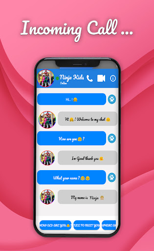 Video Call From Ninja kids & video call application to accompany your days in your free time when you feel lonelyand boring then entertain yourself with fake calls from your idol.