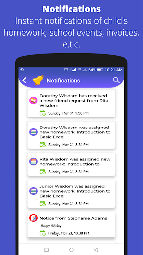 9. Notifications - Get messages from your school, useful reminders for events, friend requests, homework and much more.