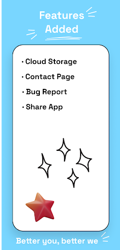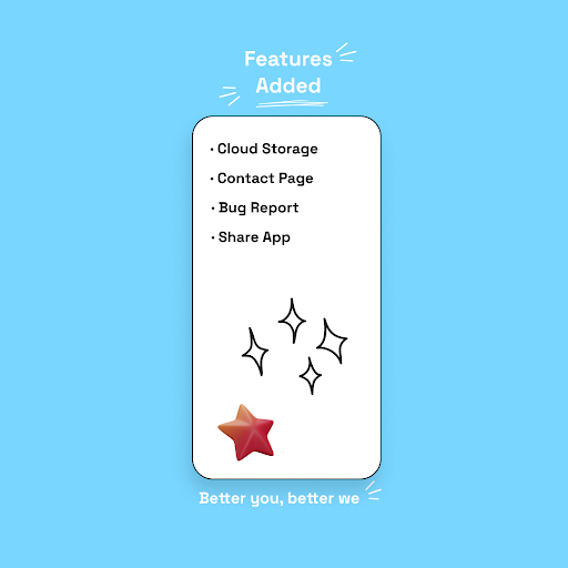 Features Added: → Cloud Storage → Bug Report → Settings Page