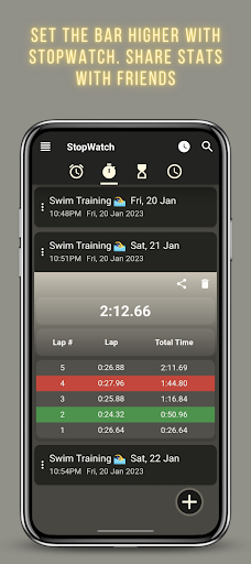 🔸 Set stopwatch clocks and share the results with your friends or your trainer!