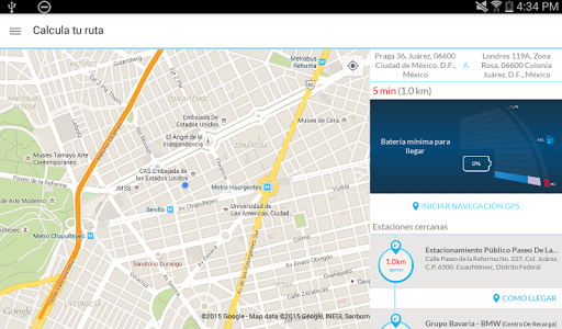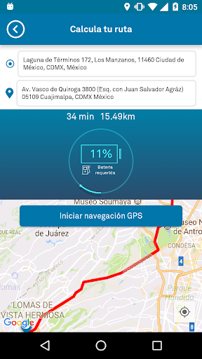 Estima el rendimiento de la batería basado en lugares a los cuales deseas navegar y el directorio de centros de servicio y centros de recarga.