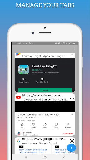 A lite web browser application. Open and manage multiple tabs. Open tabs in background or new tabs. Access your browsing history. Speech to text browsing support.