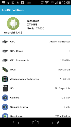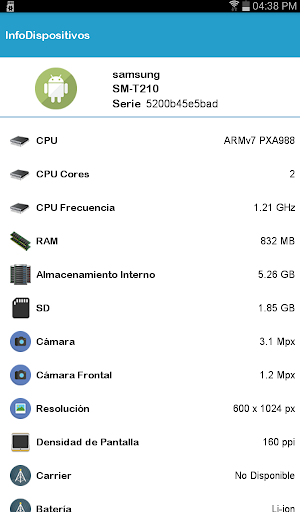 Identifica la Info de tu Dispositivo ya sea Teléfono o Tableta como Procesador, Memoria RAM, Memoria SD, Cámara, entre otros, con un solo clic totalmente gratis.