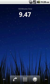 Shows current time with minutes as 100 instead of 60. Example: 13:30 equals 13:50 15:23 equals 15:38 Widget and app