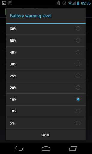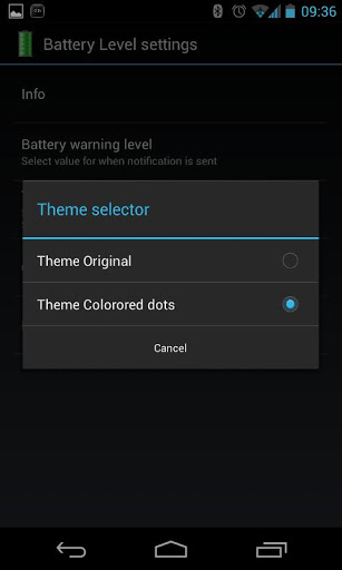 Shows current battery status of your phone on the Sony SmartWatch™. It can also notify you when the battery is below your warning level. Two visual themes.