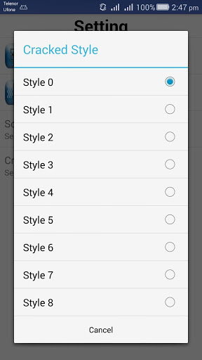 and hit crack screen button then click on screen anywhere to crack it and press back to exit...