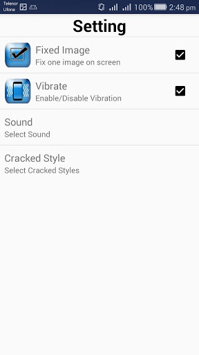 if you want to do some fun then choose any sound from list of sounds in Setting to play while touching and Choose Screen Cracked Style