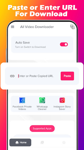 All Video Downloader allows you to download all the social media videos, images, music download with ease. You can download your favorite videos, photos, and music in just one click at lightning speed.