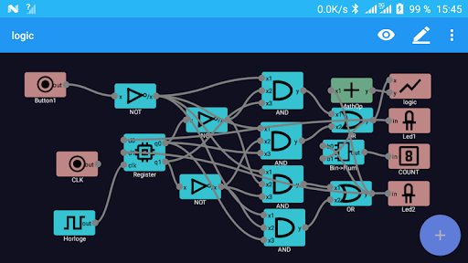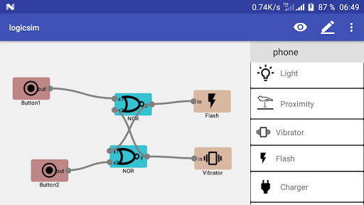 * You want to simulate logic circuits ? right, with NNB Lab you can design any kind of logic circuit to learn how they work in a practical approach by using your phone's sensors as inputs of your circuit and phone's output devices (camera flash, vibrator, ...) as outputs of yours logic circuits.