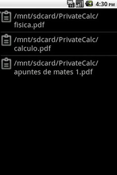 This app seems only a calculator but... if you enter your password (initialy .1234.) you will enter in your personal/secret area where you can have your secret files. ideal for math and physics exams, or to keep other kind of private documents