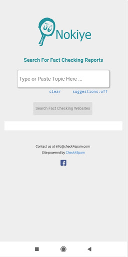 This is where nokiye.com will help you. You can either use this app (a web view) or visit https://nokiye.com and then give the search keyword to find ONLY the fact-checking articles published about that keyword. For example, if you got a social media saying "Cosmic Rays to hit Australia Soon". At Nokiye.com you can simply search for "Cosmic Rays Australia" to find all fact-checking reports published on Cosmic Rays and Australia.