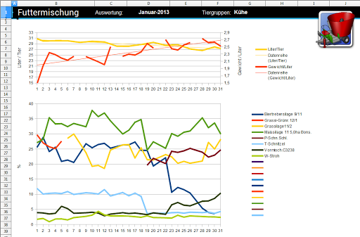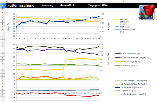 This program will bring an excellent overview about your feed efficiency/amound and the volume of milk. On this base you can easy improve your efficiency. You can detect up and downs in milk production and thier reasons.
