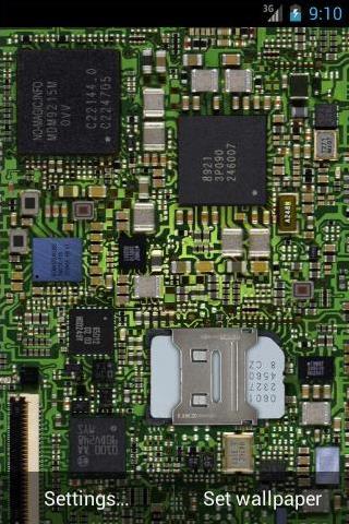 Amazing 3D live wallpaper is showing the internal structure of your phone. To create a 3D effect is used the position of the device in space. Chips, trace elements and the connecting tracks are located on the electronic card. Electronic card and its elements reflect the light realistically. In free version green circuit card and blue sparks are available. Sparks jump between elements of the board at random, and you can adjust their speed.