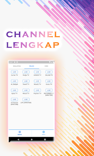 Nonton TV Indonesia semua saluran dimana saja kapan saja. Nonton siaran langsung secara lancar dan stabil(pastikan jaringan internet lancar), tidak lag serta hemat kuota baik melalui data seluler maupun WIFI.