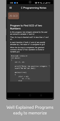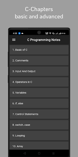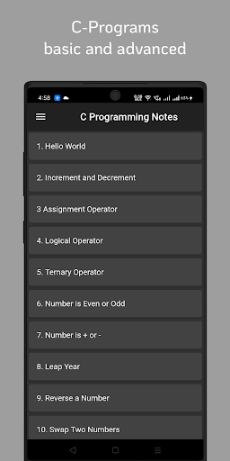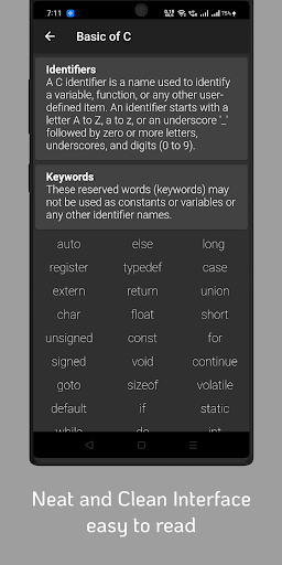 “C Programming Notes” app has a really simple and interactive UI. It is the best app to let you learn the C programming language for free. So, what are you waiting for? Download the app now to become an expert at C Programming Language.