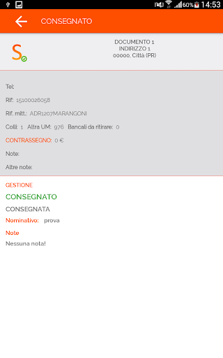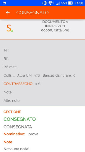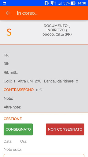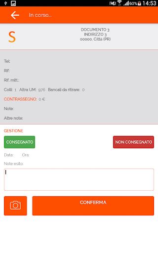 - Registrazione della prova di consegna tramite firma su display o foto del documento firmato
