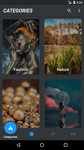 > The app provides a rich list of categories to pick the best wallpaper of your choice