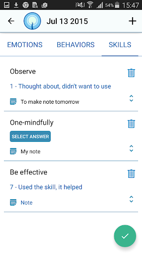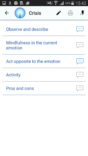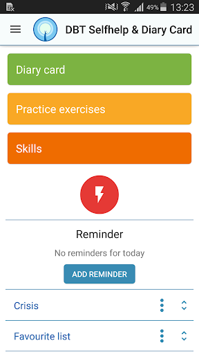 The DBT Selfhelp & Diary Card app teaches you skills that help you manage overwhelming emotions, break destructive behaviors, develop healthy relationships, be more focused in the present moment and increase your quality of life.