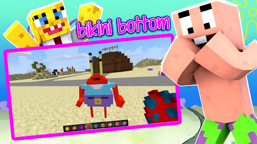 One of the brightest best games in Minecraft is the incredible Bikini Bottom mod, which allows the player to visit a beautiful city under the sea. With the main character SpongeBob and his team, you can go hunting for jellyfish. This mod will introduce you to the house in which Sponge Bob lives, this is Sponge Bob's pineapple house, as well as Patrick's house (this is a stone), Squidward's house and much more.