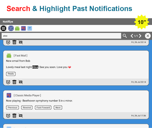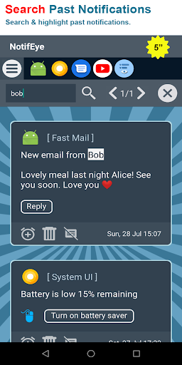 9. Search for a word or phrase and have them highlighted in the search results. Useful if you had a notification a few weeks / months ago and you forgot something important that was included in the notification.