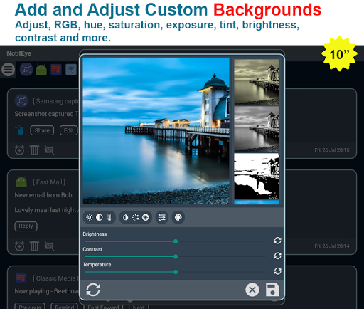 notifEye basic should be viewed as a notifications status bar cleaner and a log of notifications received ( after installation date ). List all notifications received by date, or list by the individual app that sent the notification. Choose to have all notifications automatically removed from the status bar ( if possible ). Use light or dark mode and apply a background from a list of built-in backgrounds. A free trial of the premium version is available.