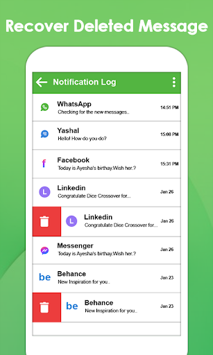 Recover Deleted Messages As well with Deleted Messages recovery feature in Notification History App. Best notification app allows you to read deleted messages as well that are shown in notifications.