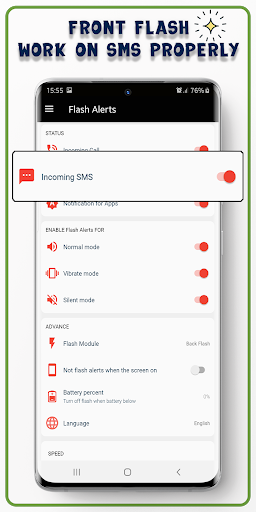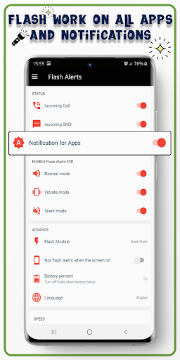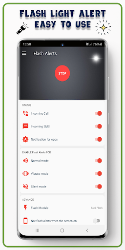 You can now get a blinking flash alert notified every time you get a call or SMS with a powerful and fast blinking flash alert on call and SMS and notification like i phone. You can customize for every application its own alert and blinking flash time.