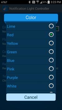 Notification light settings include 9 different color choices and 6 different blink rate choices.