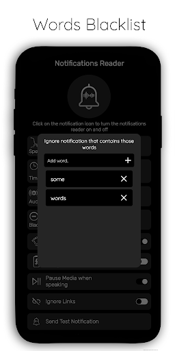 You can also choose the time when it is better not to disturb you with voice notifications, select words that you do not want to hear, exclude links from reading, or select applications from which you do not want to receive voice notifications.