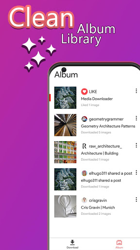 ✔ Repost, rename, share, delete downloads with powerful download manager