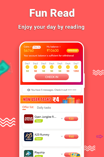You can invite your friends on FunRead to get great cash rewards. After completing the "Prime Mission", users can earn money and withdraw it instantly to their Paytm account.