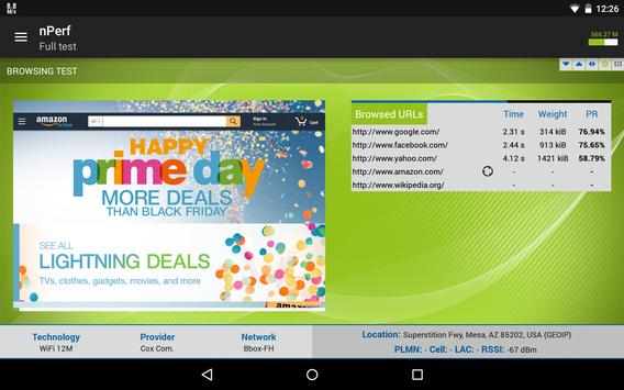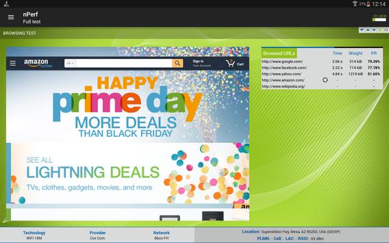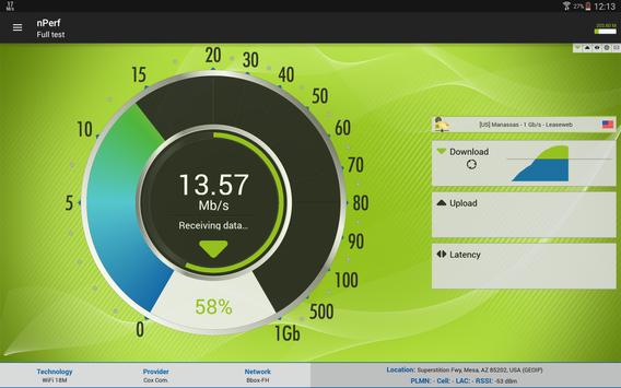 nPerf relies on an homemade top technology and a wordwide high speed servers network which can deliver the bitrate you need for speed tests. With nPerf, you do not blow up your data plan: with many optimizations, testing consumes up to 2 times less data than competing speed tests. In addition, a data indicator will notify you if the monthly threshold you can set in the menu Settings is exceeded.