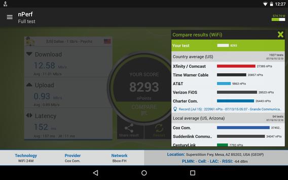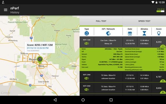 All your results are saved in an history with all tests locations on a map. Easily share your results on social networks with nPerf sharing pictures which present a useful summary of your test. Customize your application by switching the background theme using the Settings.