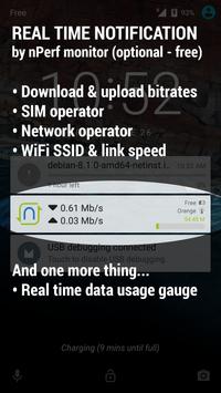 : Stay informed on data speed in real time on the top of your mobile screen (status bar). Reports your data plan usage (in notifications).