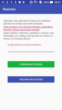 Atenção este aplicativo é apenas para ser no celular a ser rastreado, para monitorar e configurar as opções necessárias, é preciso instalar no celular que irá monitorar o aplicativo Monitor, aqui na Google Play está no endereco: https://play.google.com/store/apps/details?id=rastreio.com.monitor