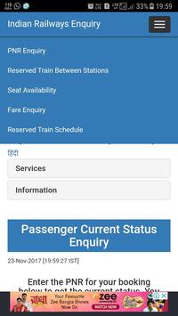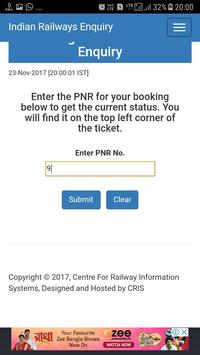 Latest updates :- 1. PNR Enquiry 2. Reserved Train Between Stations 3. Seat Availability 4. Fare Enquiry 5. Reserved Train Schedule etc.