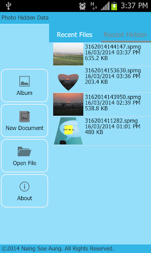 This is steganography application for Android. You can hide sensitive data securely inside the photo.