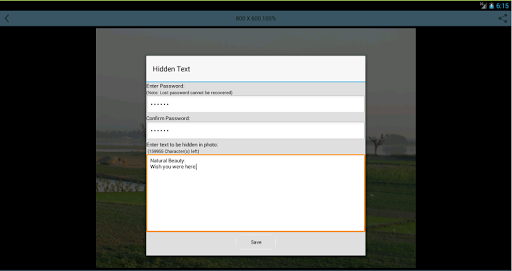 *Hide data inside photo with password protection.