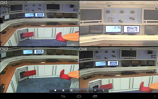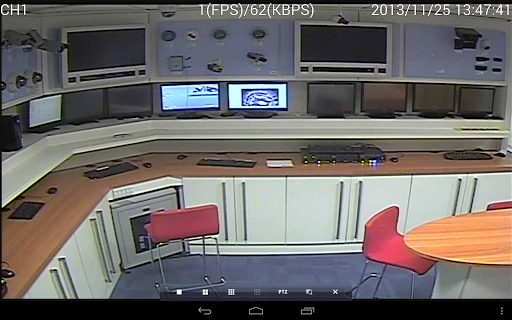 Individual cameras or split screens of multple cameras can be viewed. PTZ cameras cam be controlled.