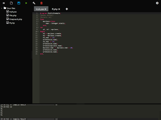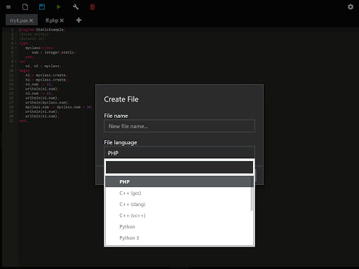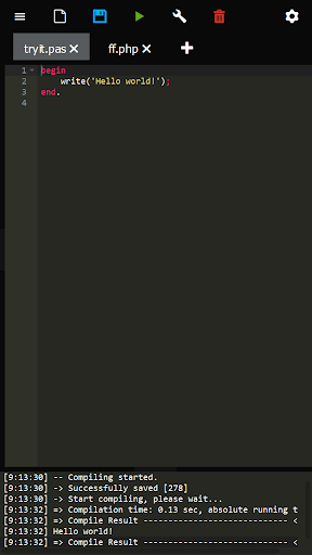 codeIDE is an programming IDE for your phone which allows you: - Write code - Cloud Storage - Run & Test it - Custom Input - Custom Compiler Parameters