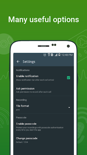 With Auto Call Recorder app, you can easily record all your calls. Hear your recordings, share it and secure it with passcode. Recorded calls can be saved in different formats. Choose the format which suits your opinion for best experiences with Auto Call Recorder app. App supports 3gp, mp4 or amr format. With some sets, call recording does not work. For best quality of your recordings try different formats. Auto Call Recorder is a very simple but helpful app. Never forget the content of your calls. Try it, it's free for you.