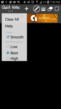 Tapping on Quick Note will open a options menu from where you can clear/delete all notes, view help information, and define the options that make notes look better in your device screen.