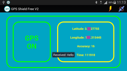 This app provides you a GPS solution by acquiring the GPS signal and outputs the obtained coordinates through a string format via Bluetooth connection.